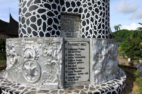 Di bagian belakang monumen ini terdapat tulisan naskah proklamasi, serta tertulis tanggal 9 Maret 1950, yang merupakan tanggal dimana Padang dikembalikan ke pangkuan RI melalui SK. Presiden RI Serikat (RIS), No.111, 9 Maret 1950.